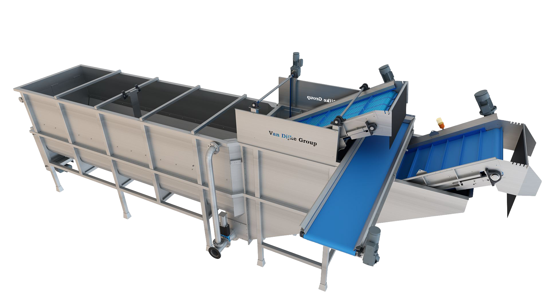 Van Dijke Drumwasher: the next generation in product washing. Featuring cutting-edge technology for superior dirt separation, it delivers exceptional results with minimal water consumption.